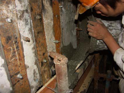 此工程的工期要求比较紧,并且为了赶工期和装修公司一起进场,造成了很多交叉作业。我们公司的管理人员严格要求。积极友好的和装修公司互相配合,在规定的工期之内完成了改造加固任务。体现了公司良好的精神风貌和员工素质。