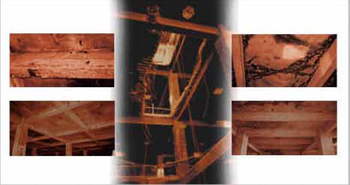 建筑经受高温辐射,构件表层严重碳化。钢筋和砼弹性模量不同,膨胀变形界面错位,引起剪切应力下降,造成安全隐患。务必突破传统束缚、改变传力途径、微观划区分析、宏观体外补强、增设过渡措施。