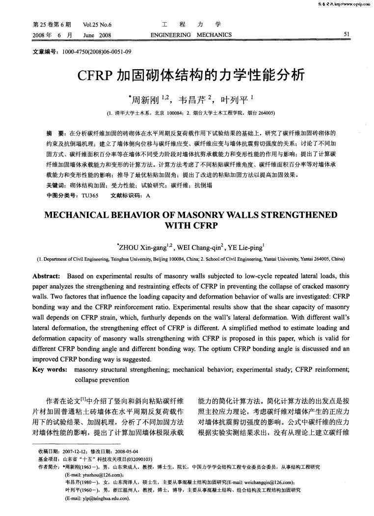 CFRP加固砌体结构的力学性能分析