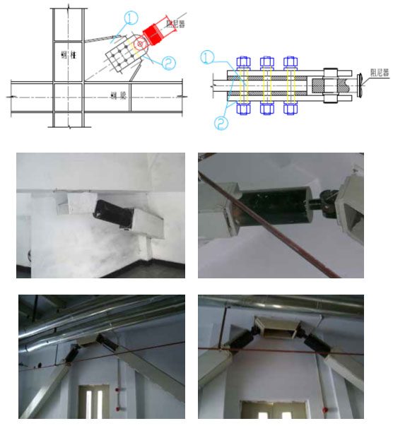 本工程抗震加固采用CMD 组合式金属阻尼器,其优点是不存在漏油问题,附加重量小,对基础不会造成负担。仅增加结构小震下刚度,大震下提供阻尼,不会增加结构大震下的内力。消能减震措施比传统抗震措施工程造价可降低10%,且具有更高和更可靠的抗震性能。
