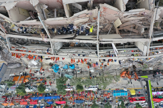 酒店倒塌后现场照片
